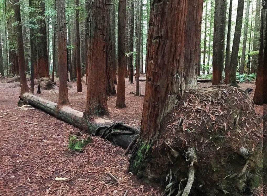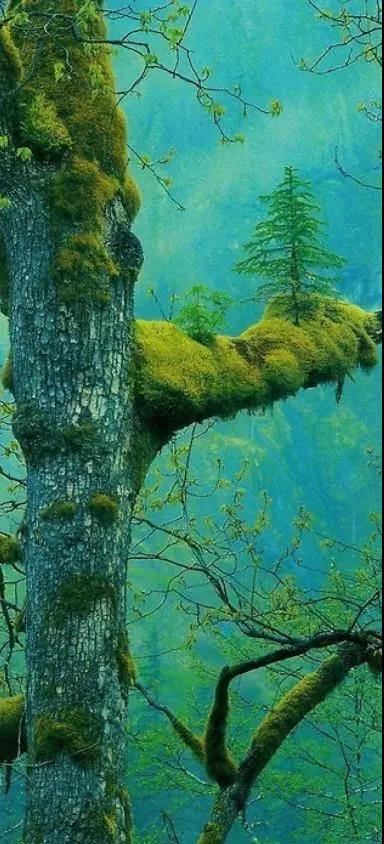 这棵大树不知道怎么倒在了地上,但是它的树干上又重新长出了四棵大树。