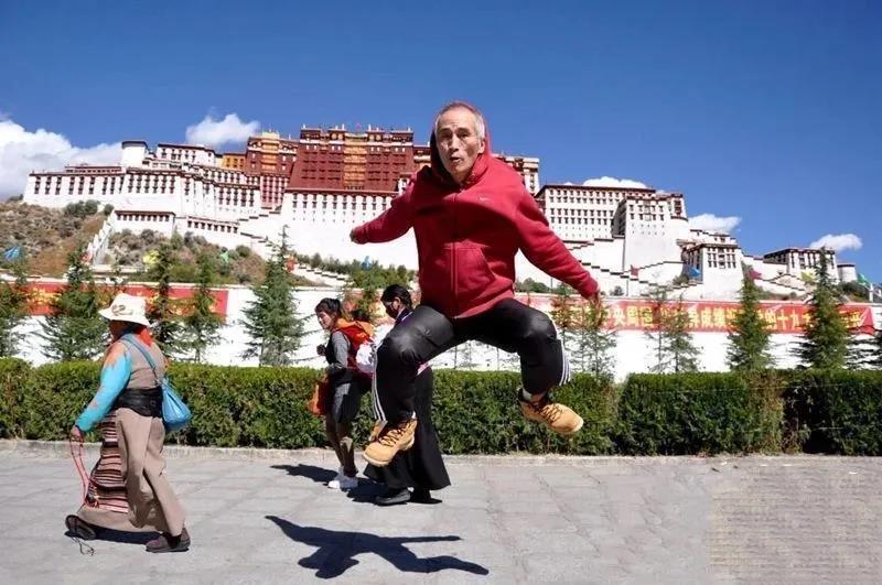 一路上他从西藏跳到了海边,从国内跳到了世界,充满活力,不知疲倦。
