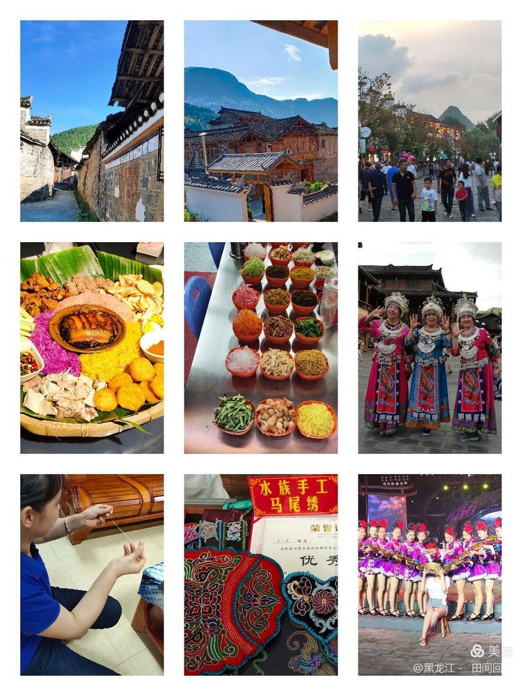 与自然环境相映衬,古朴淳厚,绚丽多彩的民族风情呈现出原始文化基因。贵州是个多民族的大家庭,少数民族占1/3,有苗,侗,布依,土家,仡,佬,瑶等这些民族的建筑,服饰,饮食等异彩纷呈,各少数民族的歌舞也独具各自的特色。我们先后来到了青岩古镇、镇远古镇、西江千户苗寨、荔波古镇、茅台古镇,体验了这里的民俗和风土人情。