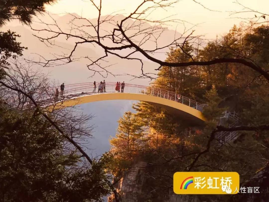 自北向南走过彩虹桥,便穿行在半山腰上的人行栈道,即所谓的“燕子垭”。俯视着群山环抱的落日秋色,呼吸着带着泥土味和各种绿植芳香的氧气,顿觉旅途的劳累减轻了一半。