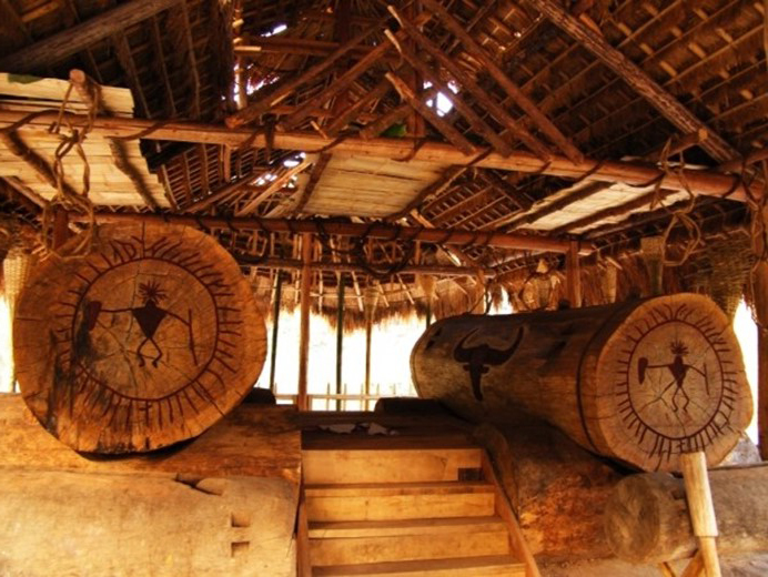 在每个佤族村寨里,至少都有一对木鼓,大的为母鼓居左,小者为公鼓居右,供放在寨中高地的一间竹制木鼓房里。佤族人民视木鼓为尊贵而神圣的乐器,制作木鼓的日子被当作盛大的节日,称为“拉木鼓”。
