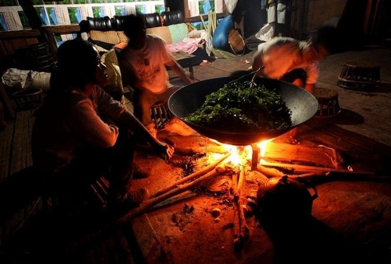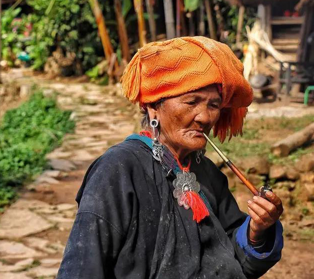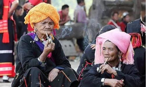 佤族男女普遍有吸草烟的习惯,各家都有一块园圃,除了种些蔬菜外,自己种植草烟,随处可见上了年纪的老人叼着烟斗。