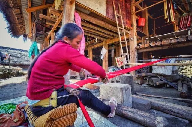 寨子里迄今还保持着男耕女织的传统,寨子里的妇女一般空闲的时候都会在自己家门口拉起纱线就地织起布来。