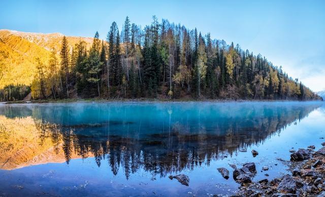 在8月,北疆就率先进军秋季,闻名中外的“神的花园”喀纳斯湖,便是位于北疆阿尔泰深山密林中的一片人间仙境。