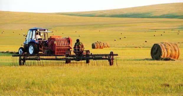 被收割的牧草达成半人高的结实草捆,随性放在一望无际的草原上,一点点将我们的视线引向远方,不需要镜头刻意渲染,大自然的色彩就很美。