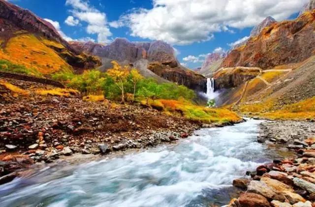 斑斓的色彩与蓝天、白云、山川、河流构成一幅醉人的金秋画卷。