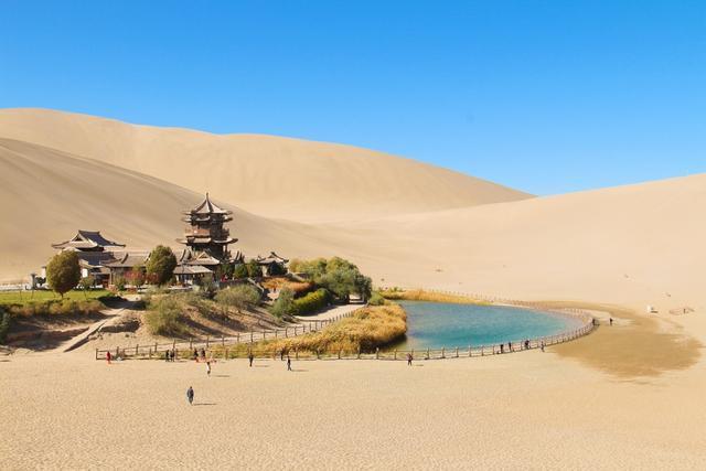 深秋季节,鸣沙山夏日烦躁的游客逐渐褪去,而秋季才恰恰迎来鸣沙山唯美的时节。