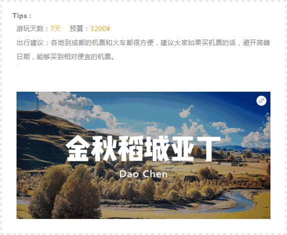 “有一个地方,叫做稻城。我要和我最心爱的人,一起去到那里。看白色的雪山,看一场秋天的童话。”