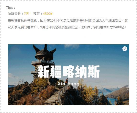 如果想知道一个地方什么时候最美,就看经验丰富的旅行者和摄影师什么时候出发。就如冯唐说的“秋季短到没有”,如此珍贵的秋季极致的美景,经验丰富和对景色极为挑剔的旅行者和摄影师,已经摩拳擦掌准备包揽这些地方最极致的秋景。