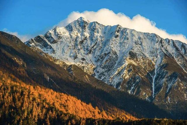秋季的稻城亚丁没有了夏季神山经常被云雾包裹的困扰,此时有最干净的天空,亚丁三神山在湛蓝的背景下一览无遗。