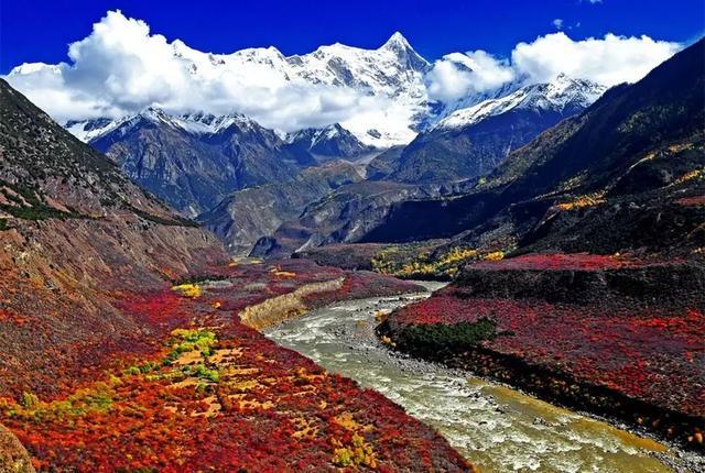 是目前我国最大的红叶风景区,金秋时节,米亚罗不同色彩的桦树、松树、柏树、枫树、青杠、花楸、白杨、沙棘、海棠等争相挺拔;还有高山柳、三颗针等灌木丛点缀其间,密不可分地被彼此覆盖!
