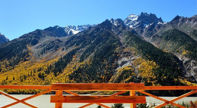 欣赏然乌湖美景的最佳季节在秋季,其时湖水清澈碧蓝,湖畔山岳色彩斑斓。