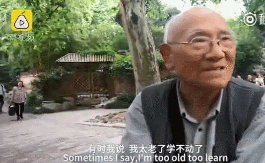上海静安公园, 93岁的老爷爷,每周末到这里和外国人对话来练习口语,有时他会觉得自己太老了,学不动了,但有人告诉他:任何人,不管是二十岁还是八十岁,停止学习才使人变老,不断学习才能永葆青春!这也许就是保持年轻活力的秘诀吧!