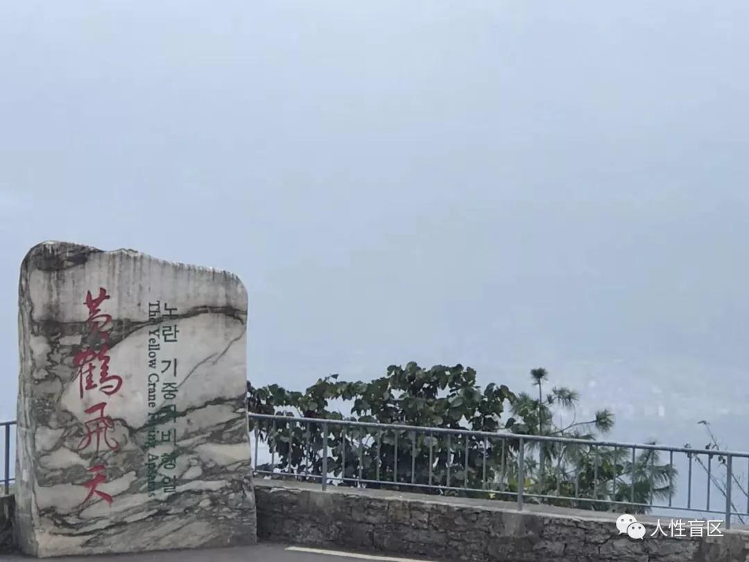 再往前就来到了一片开阔地,边上是观景台,传说也正是黄鹤升天的地方,由于临近傍晚,江面上已经起雾,山下景色呈现一片朦胧,若隐若现,好似仙境。正所谓“天上人间。