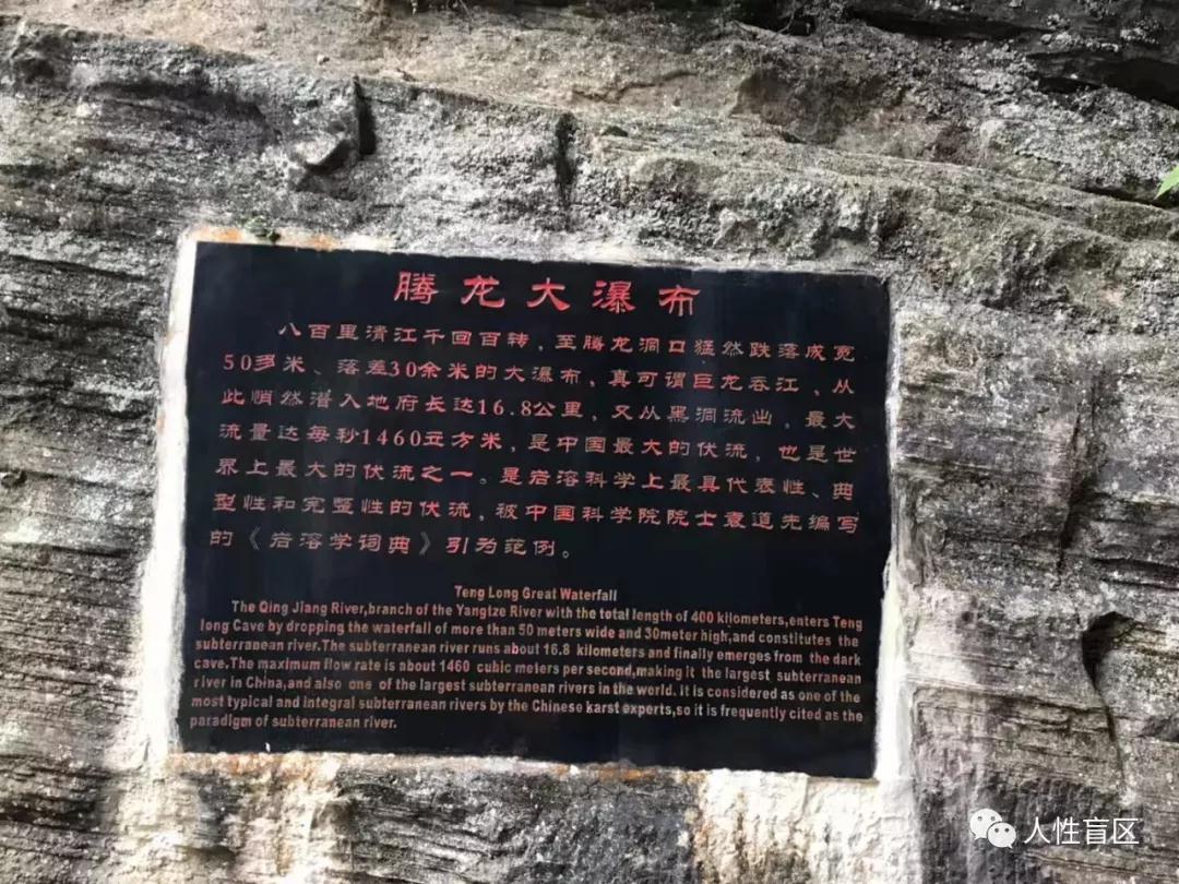 这里是八百里清江经过百转千回至此,陡然跌落成宽50米落差30余米的大瀑布,然后流入岩洞,吼声如雷、气势磅礴,真可谓巨龙吞江,因此被誉为“腾龙瀑布”,从此流入地下成为16.8公里的暗河,流量1460立方米/秒,是中国最大的伏流。