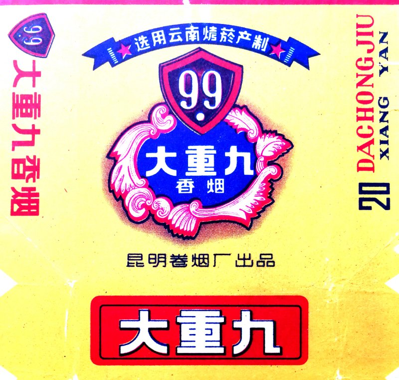 老牌号烟标【大重九】,是源于为纪念辛亥革命,缅怀蔡锷大将军,在1911年10月30日(农历九月初九重阳节),率部于云南反清起义之宏伟壮举,而命名及设计的香烟品牌。