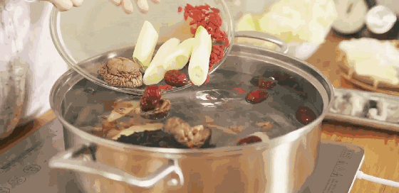 一锅地道的广东火锅,随着锅底温度升高,翻滚着,