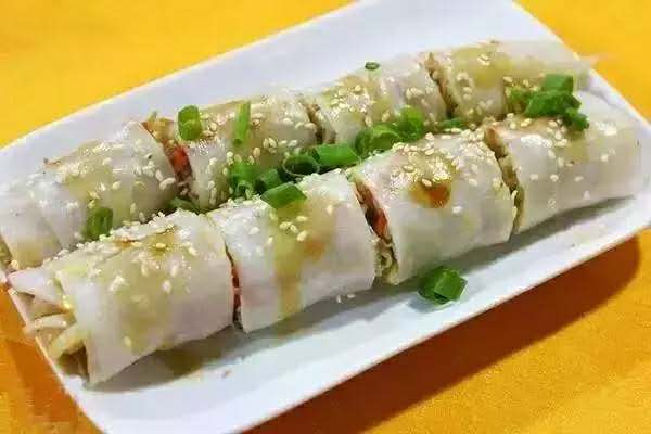 因外形呈圆条形,貌似猪肠,所以被取名为“猪肠碌”。炒熟的豆芽、炒河粉等做成馅,以特制的河粉包裹,洒上芝麻,蘸上辣酱伴食,超级赞。海陵岛大部分小吃店、餐馆、茶楼都有,但一般都只在早、晚市供应。