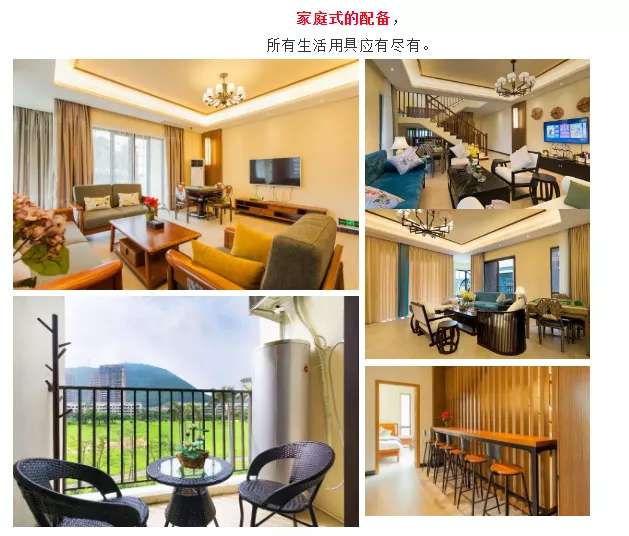 如果是几家出行或者朋友聚会出行的话,合租别墅也是不错的选择。一般别墅装修精致,配套设施完善,电动麻将、BBQ烤炉、电视、空调、冰箱、洗衣机、电磁炉、电饭煲、碗碟、热水壶、茶具等一应俱全。