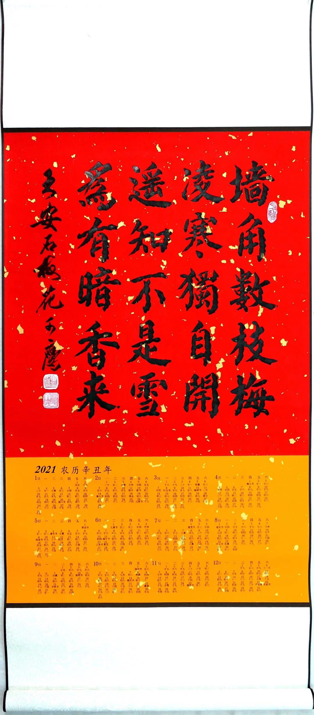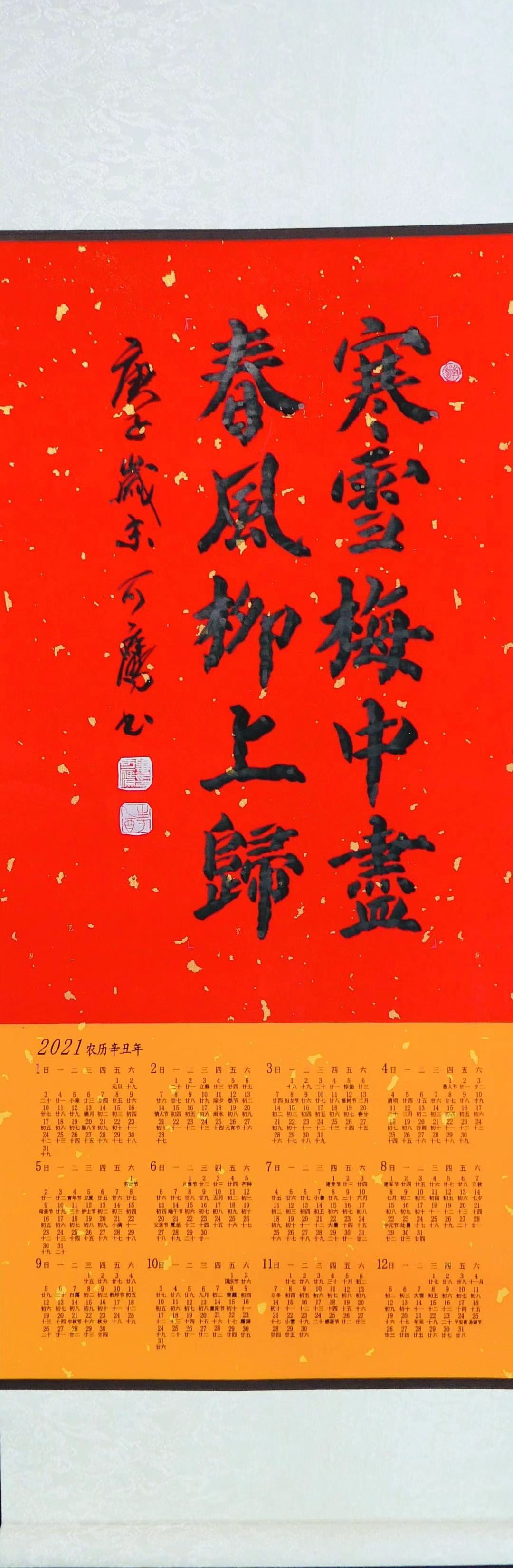 昨天下午书法沙龙给我送来3幅2021年挂历画轴。