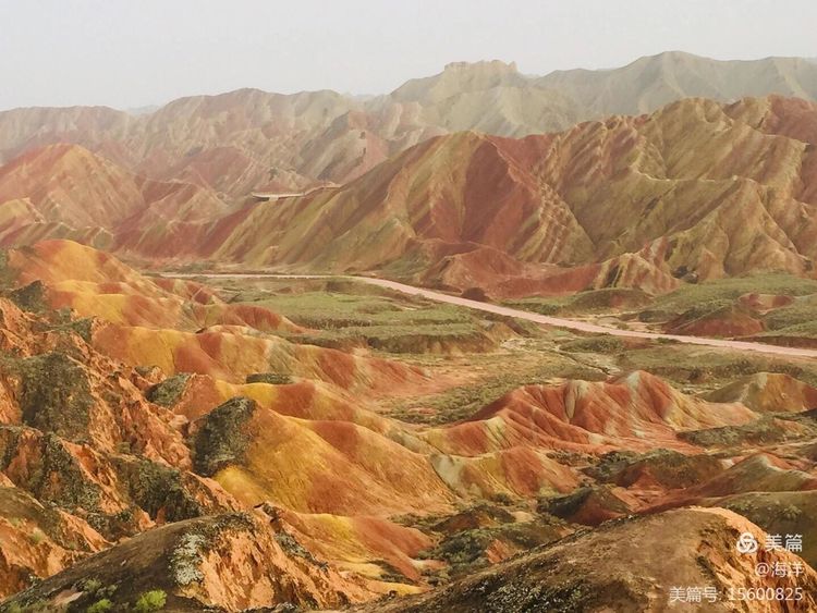 这是七彩斑斓的彩虹画山,是神笔之作,是上苍赋予了这片神奇而美丽的色彩地貌,是大自然的鬼斧神工,举世罕见一七彩丹霞雄伟以色着而美丽。