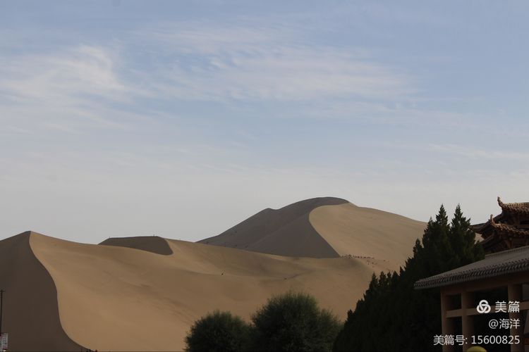 爬上高高的沙山,可见沙外的世界么?由于时间关系,没有选择爬沙山,是月牙泉的美丽而神奇更吸引着我们。但从上往下滑沙,感受一定会很奇妙。