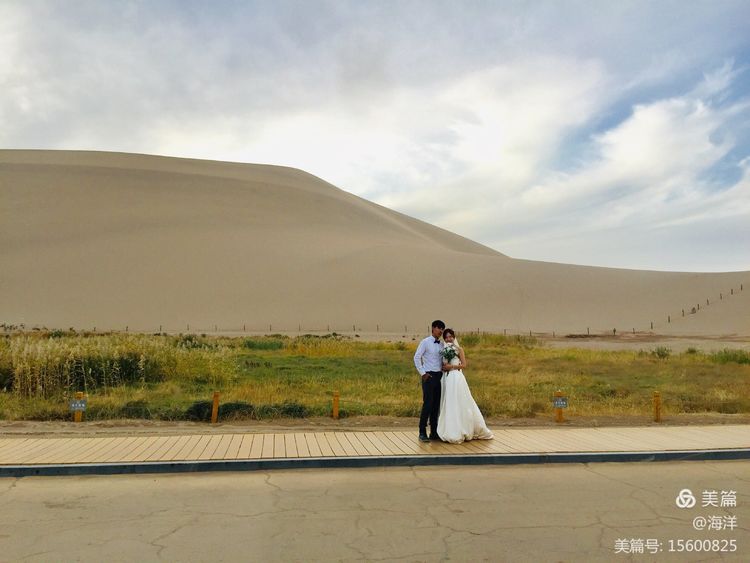 看到一对年轻人在著名的呜沙山月牙泉风景区拍婚纱照,也不失为一种浪漫和温馨的选择吧。