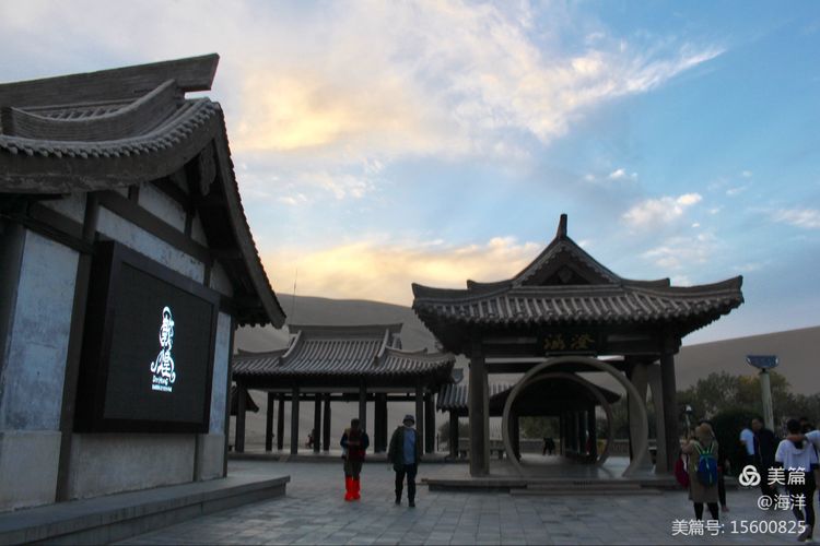 穿越在广袤的戈壁荒漠,忽然眼前一亮,一片绿洲在沙漠深处裹挟着黄沙成为一阵靓丽风景。绿色中的精致而优雅的建筑显现眼前,原来我们到了沙漠中的绿洲、清新自然脱俗的敦煌市。