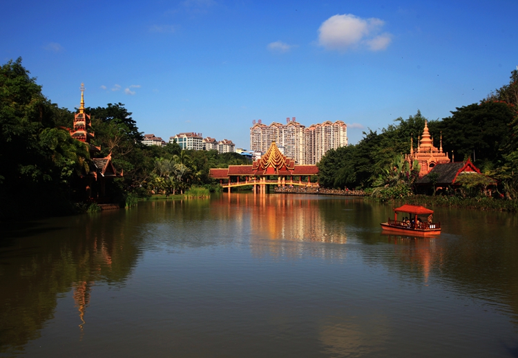 曼听公园是天然氧吧,走在林荫道上,鸟语花香,让人心旷神怡。走累了,可以体验一下亲手制作陶艺的感受,还可以划船观赏孔雀湖两岸风光,或者观看鹦鹉、大象表演,亦或去咖啡厅小憩都是不错的选择。公园里人来人往,孔雀湖边还有一座白色的小亭吸引了人们的目光,许多年轻人在此拍婚纱照。