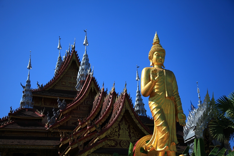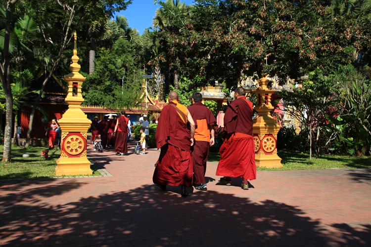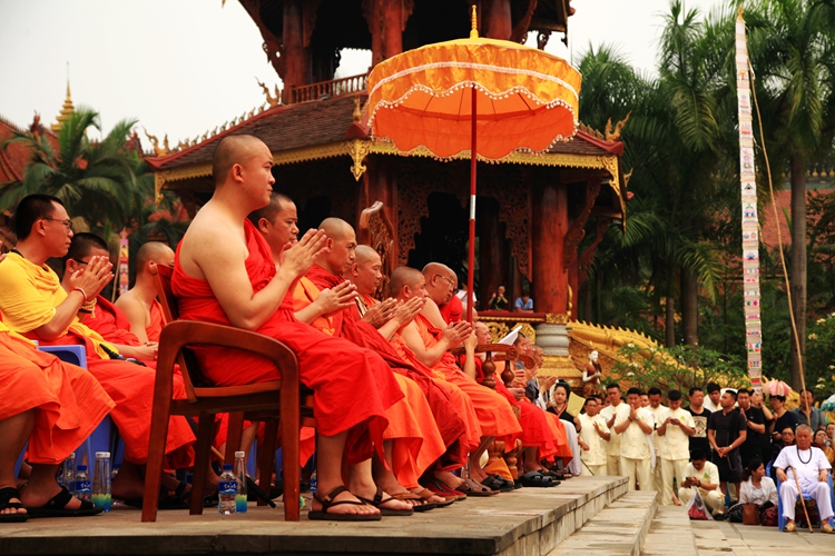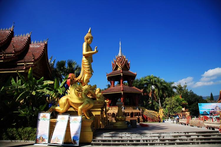 在曼听公园,感受傣王室文化,聆听神衹的声音,仿佛穿越了时空。公园里的总佛寺,是西双版纳佛教信徒拜佛的中心,它不仅在西双版纳出名,在东南亚各国中也是名声斐然的。这座佛寺是傣族人心目中的圣地。傣历新年,这里举行了浴佛、泼水祈福活动,高僧大德亲临现场,众僧居士和游客一起祈福礼佛。