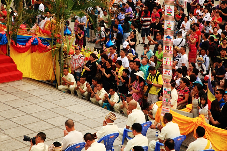 是夜,走进曼听公园,跟着队伍先去餐厅吃晚宴。诺大的餐厅几百号人,这是自助餐,傣式风味的美食应有尽有。餐毕,游客排着队入剧场,晚会就此拉开序幕。这场晚会,集合了中国、老挝、泰国国、缅甸、越南、柬埔寨六国文化特色,也包括了傣族、基诺族、布朗族、拉祜族、瑶族、哈尼族六个少数民族的民俗风情表演。