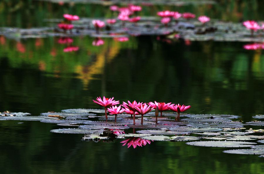 花卉园里有莲花池,睡莲满池塘,还有圆圆大大的犹如簸箕的王莲。这种植物我头一次见到,以前听都没听说过。王莲巨大无比,漂浮在水面上,非常壮观。如果人坐在王莲上,不知能否下沉呢?您见过会跳舞的草,会下雨的树吗?在花卉园里,就有跳舞花和雨树。甚至还有似鸟儿飞翔的天堂鸟呢。大自然真的很神奇,把各种奇花异草展现的淋漓尽致。