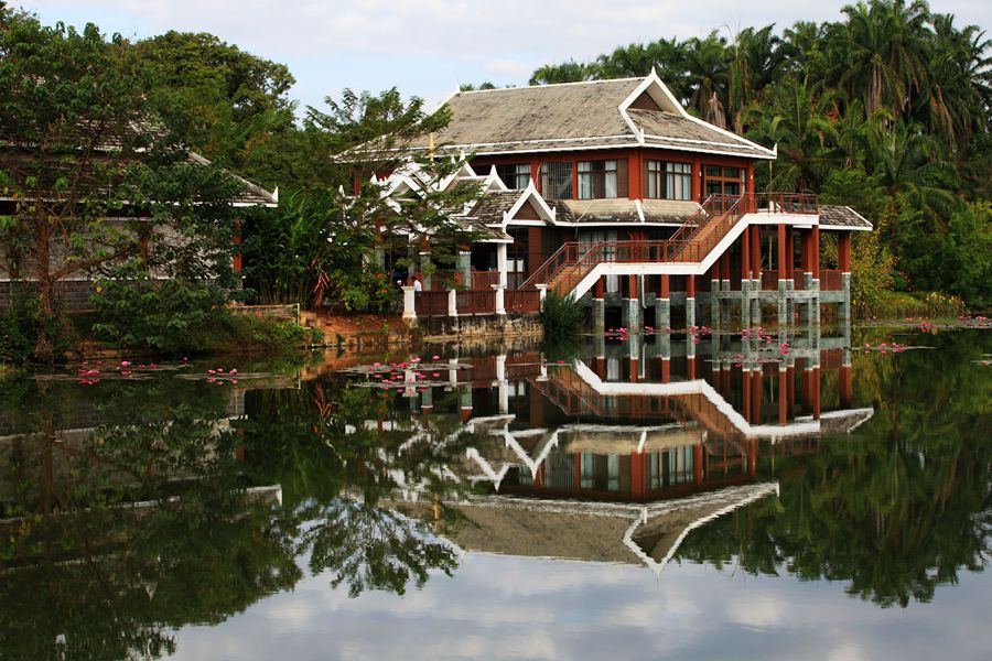 花卉园里有观光游览车,跟团来的游客只能选择坐车游览就匆匆离去,而我们有的是时间,可以慢慢走,细细赏。花卉园里主要景点有观鱼巷、周恩来纪念碑、热带棕榈园、鸡蛋花园、橡胶文化苑、稀树草坪区、叶子还原、五树六花园、科技陈列馆、空中花园、热带水果种质园、可可园等景点。