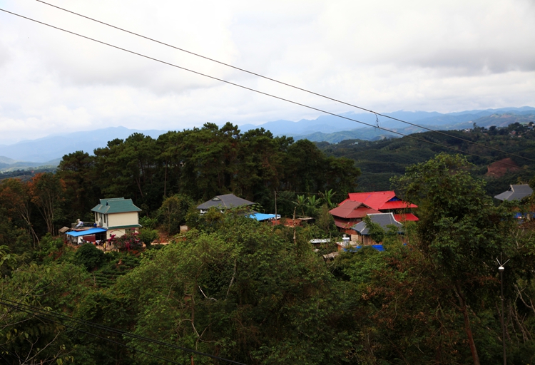 登上基诺山巅,极目远眺,山峦叠嶂,满目青翠。蓝天白云下,竹楼密密。清新的空气比花香还要沁人心脾。山路弯弯,树枝上挂着牛头骨架,图腾上刻着许多面目狰狞的神怪形象,恍惚这里是原始部落。山顶有一处基诺民俗馆,里面有织布机,有长长的像彩虹一样的布匹,还有耕田犁地的工具,还有火塘、乐器、石磨等。