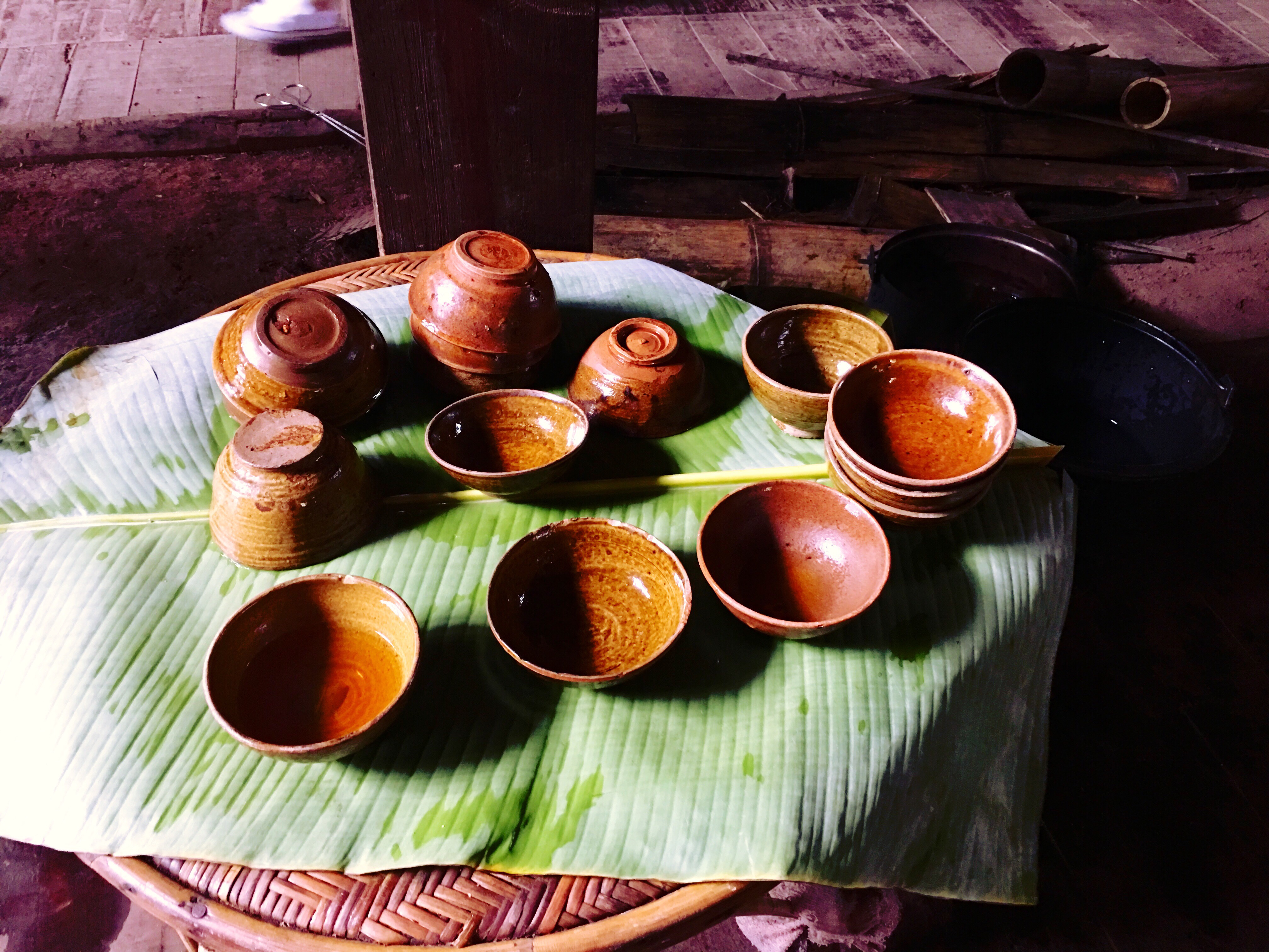 民俗馆里全方位展示了基诺民族的生活习俗,我们还见到了许多基诺原始的劳动工具。在一间房间里,房梁上挂着收获的玉米,地上支着铁壶,茶香四溢,坐下歇歇脚下,品尝清咧甘甜的普洱茶。基诺山是普洱六大古茶山之首,基诺山的茶很出名。