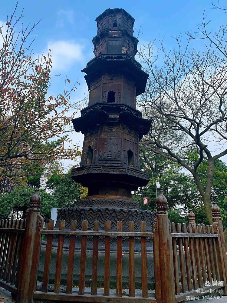 进景区,沿东吴故道上行,第一个喜欢的景点是宋明铁塔。此塔系唐卫公李德裕于宝历元年(825年)所建,故又名卫公塔。原为石塔,后毁。北宋元丰元年(1078年),改建成九级铁塔,后屡毁屡建。现为四层,约8米高,塔基及一、二层为宋代原物,三、四层为原塔的五、六层,系明代所铸。虽然残破,但仍挺拔着身姿,基座和塔身上都有漂亮的花纹。它是我国仅存的六座铁塔之一,也是江苏省境内惟一的铁塔。