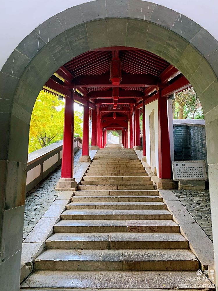 往甘露寺方向,要通过一条朱红的长廊,据说这里就是刘备东吴招亲、吴国太相婿时,孙权埋伏刀斧手的地方。