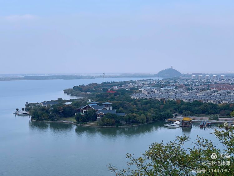 我们也套上了鞋套,登高远眺一番,刚刚游览过的焦山,看的清清楚楚,江上秀色确实诱人呢!