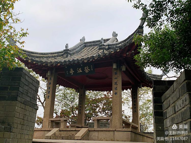 需要提醒大家的是,现有北固亭建于明朝崇祯年间,石柱上刻有楹联两副:“客心洗流水,荡胸生层云”,“此身不觉出飞鸟,垂手还堪钓巨鳌”。由于位于北固山一角,又挂着祭江亭的匾额,很容易被错过。