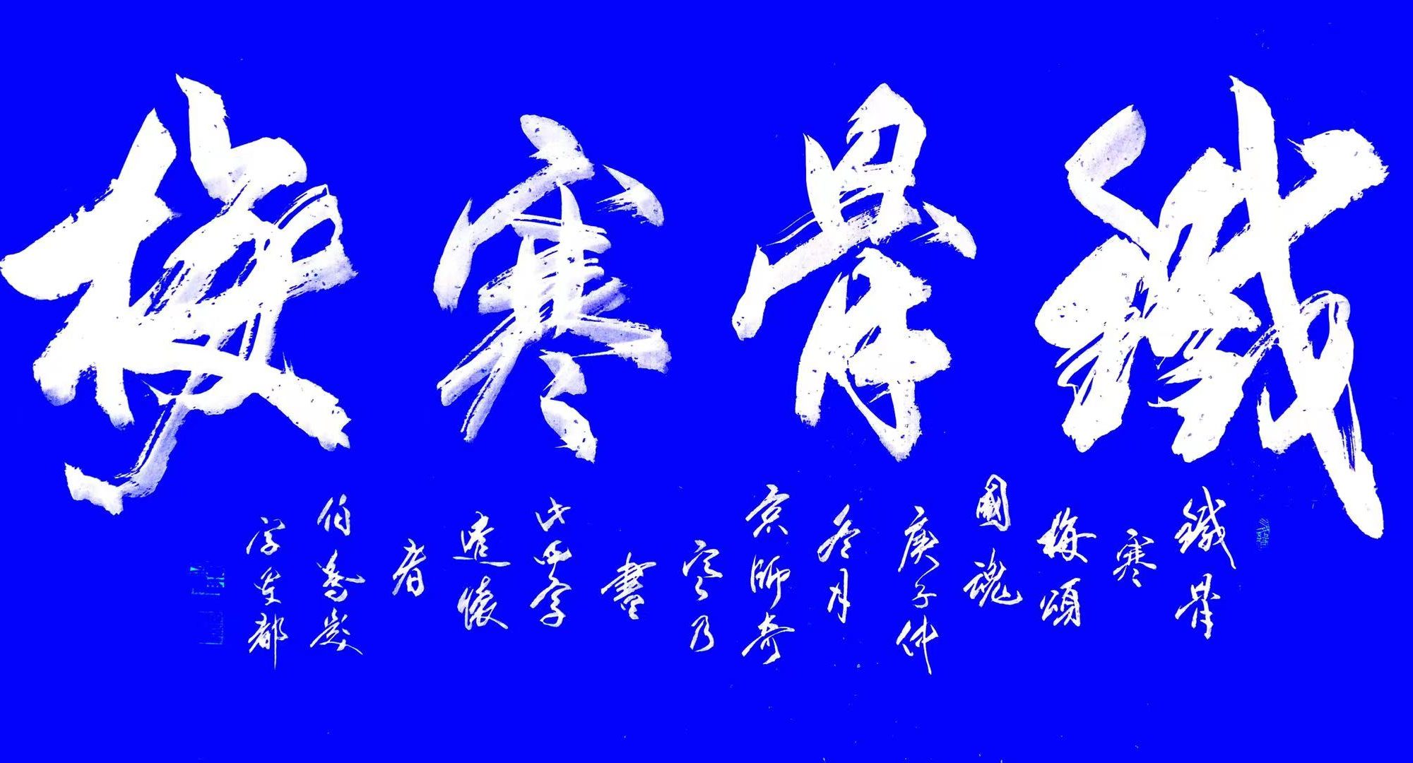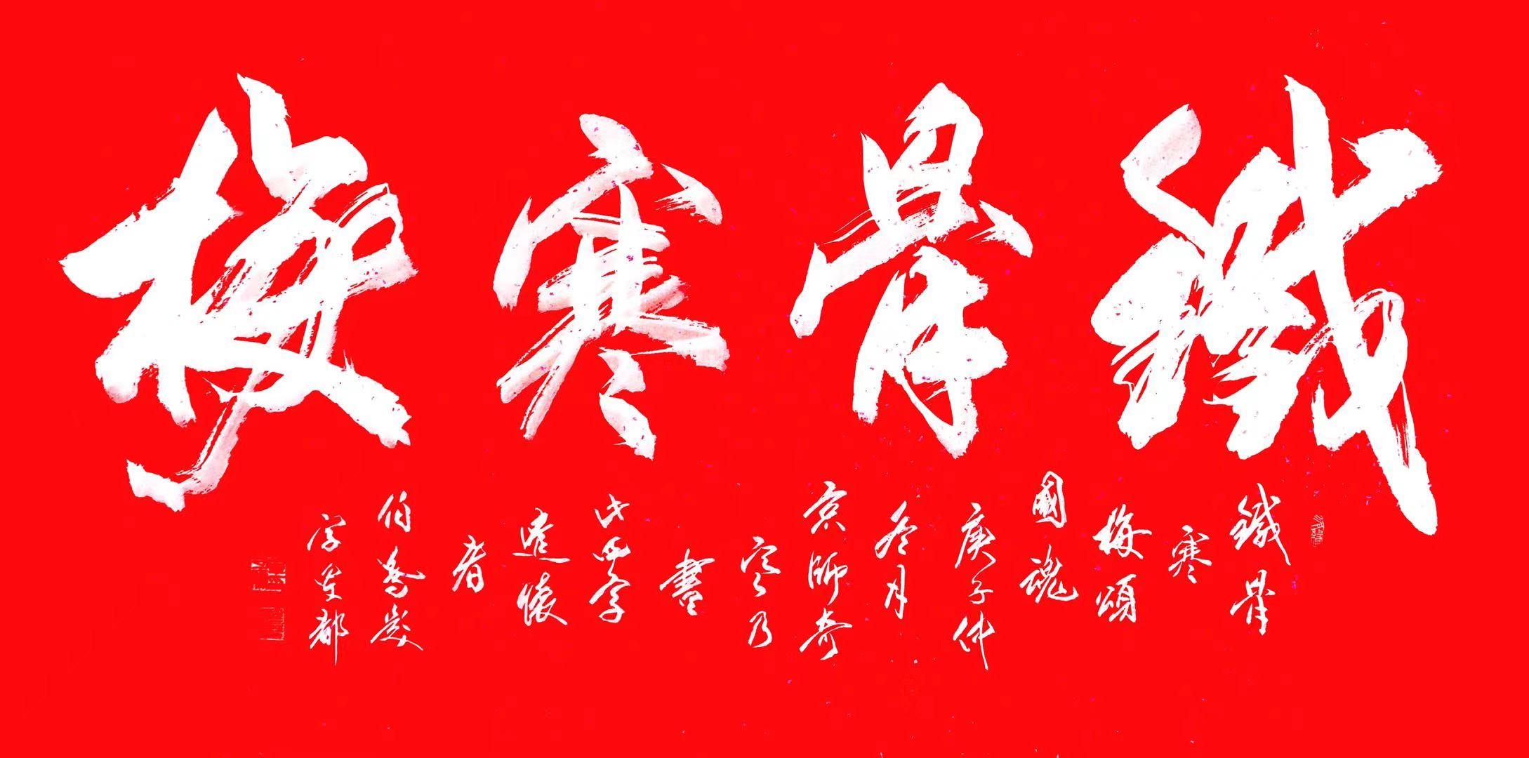 今天是京城奇冷的一天,读微信见唐建老师有“铁骨寒梅颂国魂”句,乃展四尺洒金宣纸书“铁骨寒梅”四字,以扬我国威!