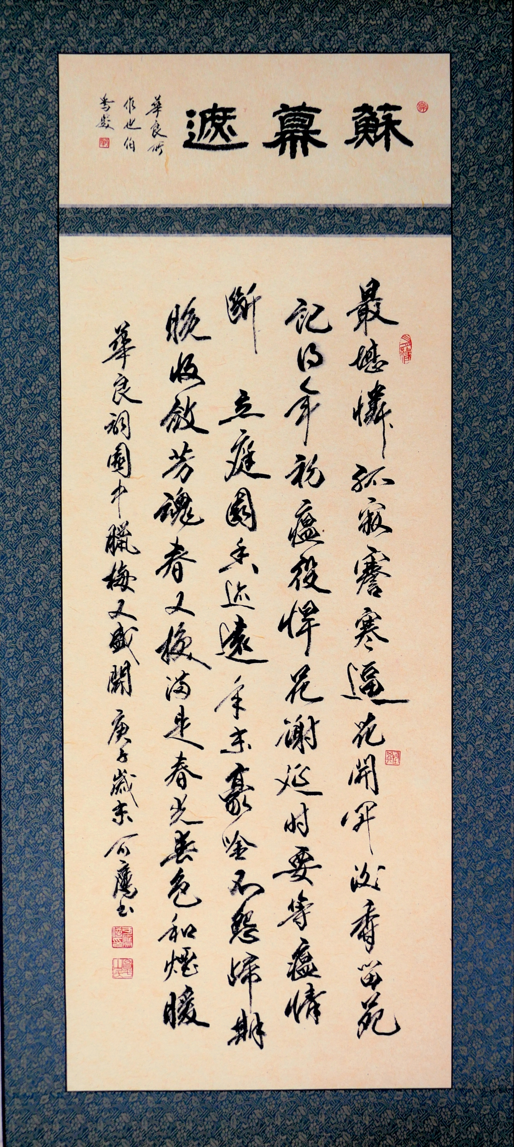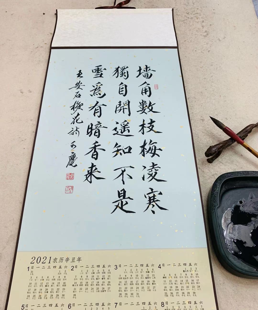 今早展开我唯一的一幅空白画轴,用宋徽宗的瘦金体书写王安石《梅花诗》,淡雅中透出早春气息,冬天来了,春天还会远吗?
