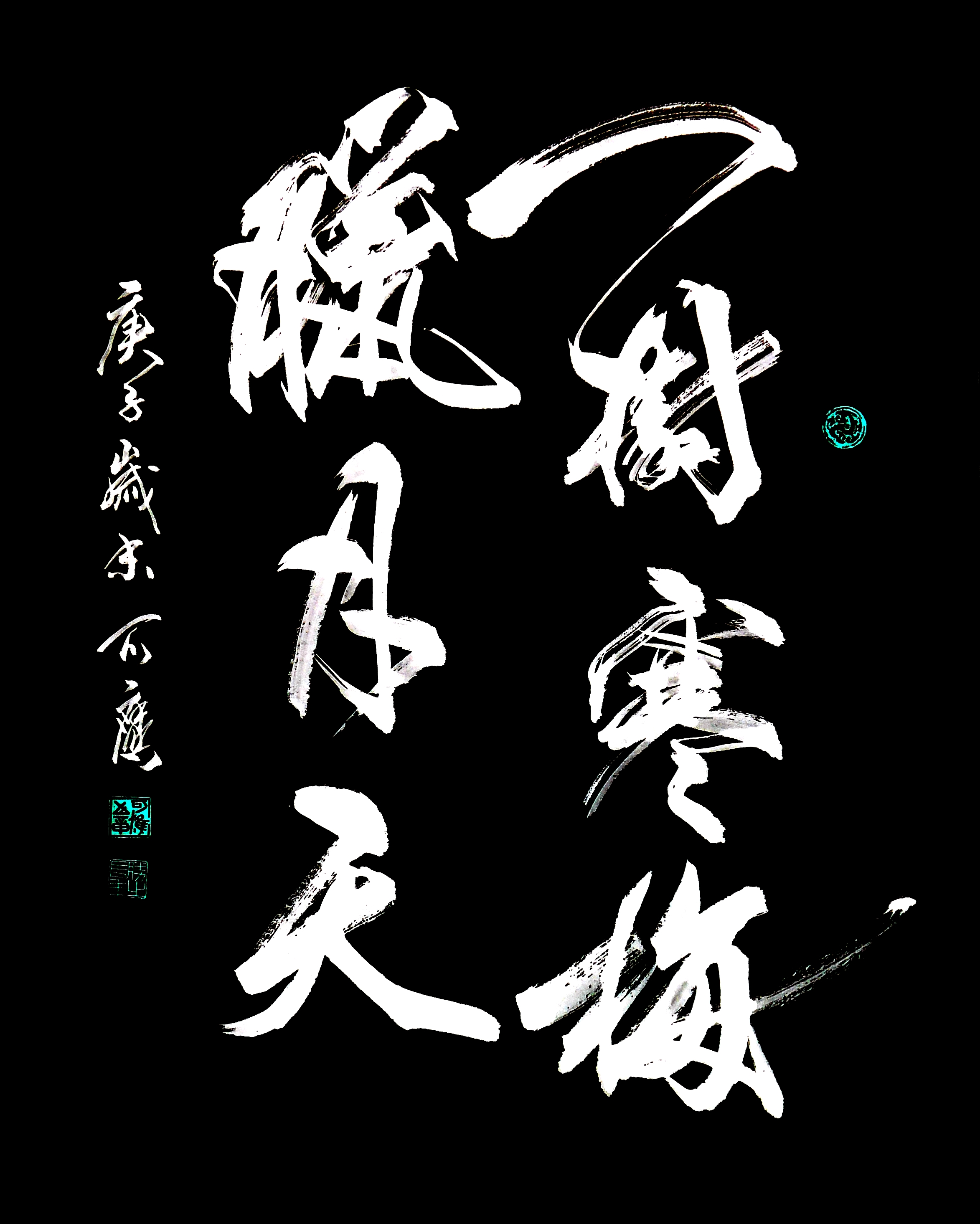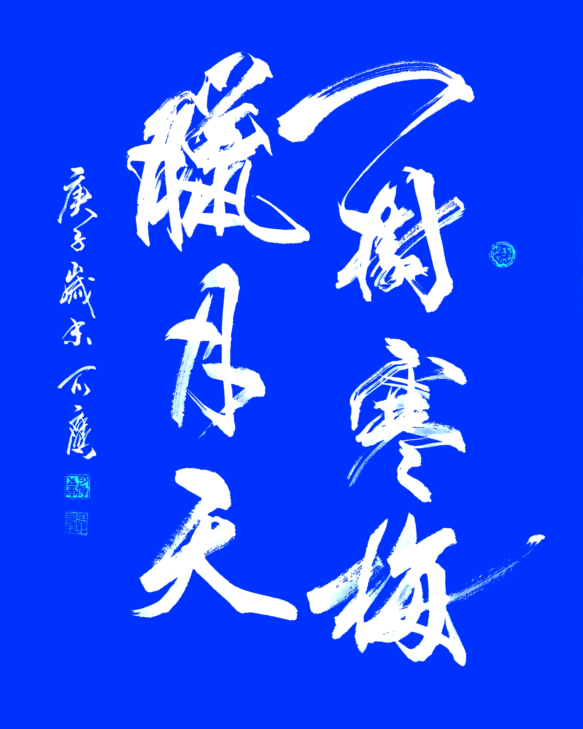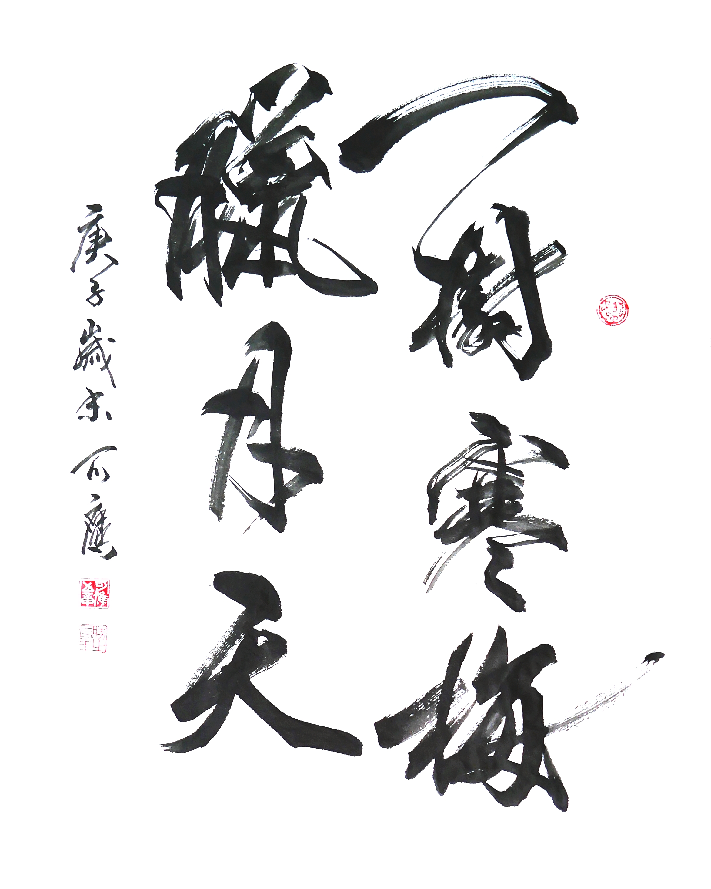 朋友发来某人书展题目:一树寒枝腊月天。有点苍凉萧瑟,乃更改一字,为:“一树寒梅腊月天”,画面立即发生了变化,佳句不可无书,用大字行草书之。