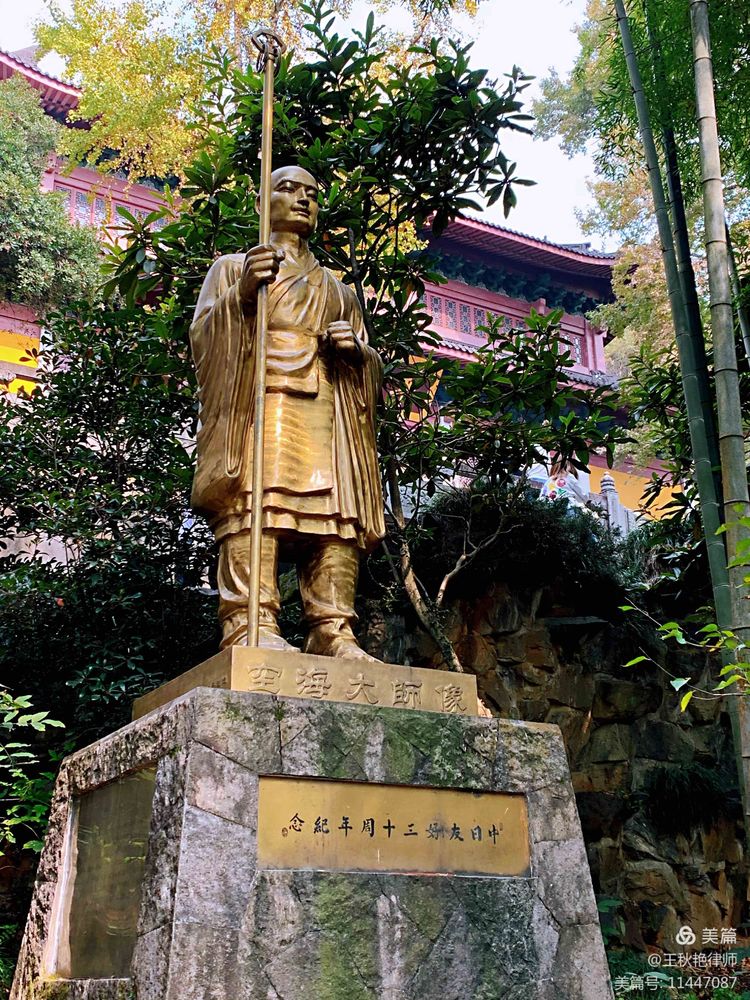通往华严殿的路上,有一座日本友人赠送的空海大师像,觉得这个名字好熟悉,却怎么也想不起来。然后超超提醒我:“就是那个《妖猫传》中的日本和尚”。仔细看了看,塑像中空海大师的面貌还真的和电影中的有几分相似呢!