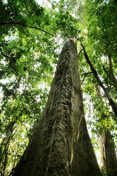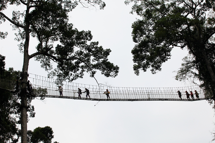 望天树是东南亚热带雨林的标志性树种,它们是雨林中的巨无霸,树高达20层楼的高度,可谓参天大树。景区里处处可见直插云宵的望天树。景区最具特色的当属“空中树冠走廊”项目,我因有恐高症,没敢登高,只在树下仰望。
