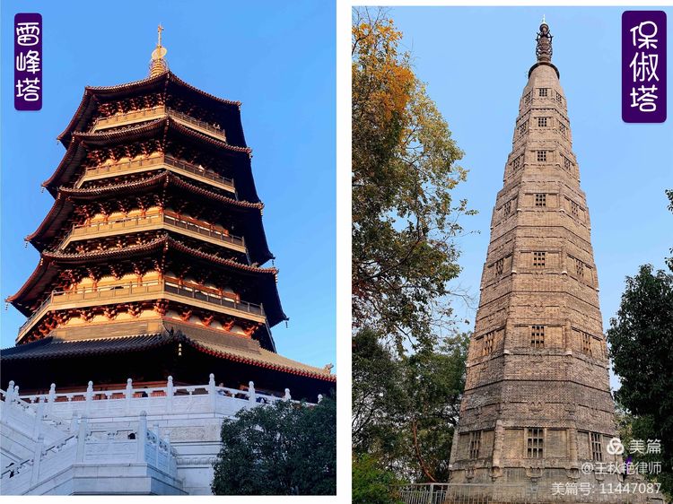 二塔从外观上来看,素有“雷峰似老衲,保俶如美人”之说,为西湖之标志。