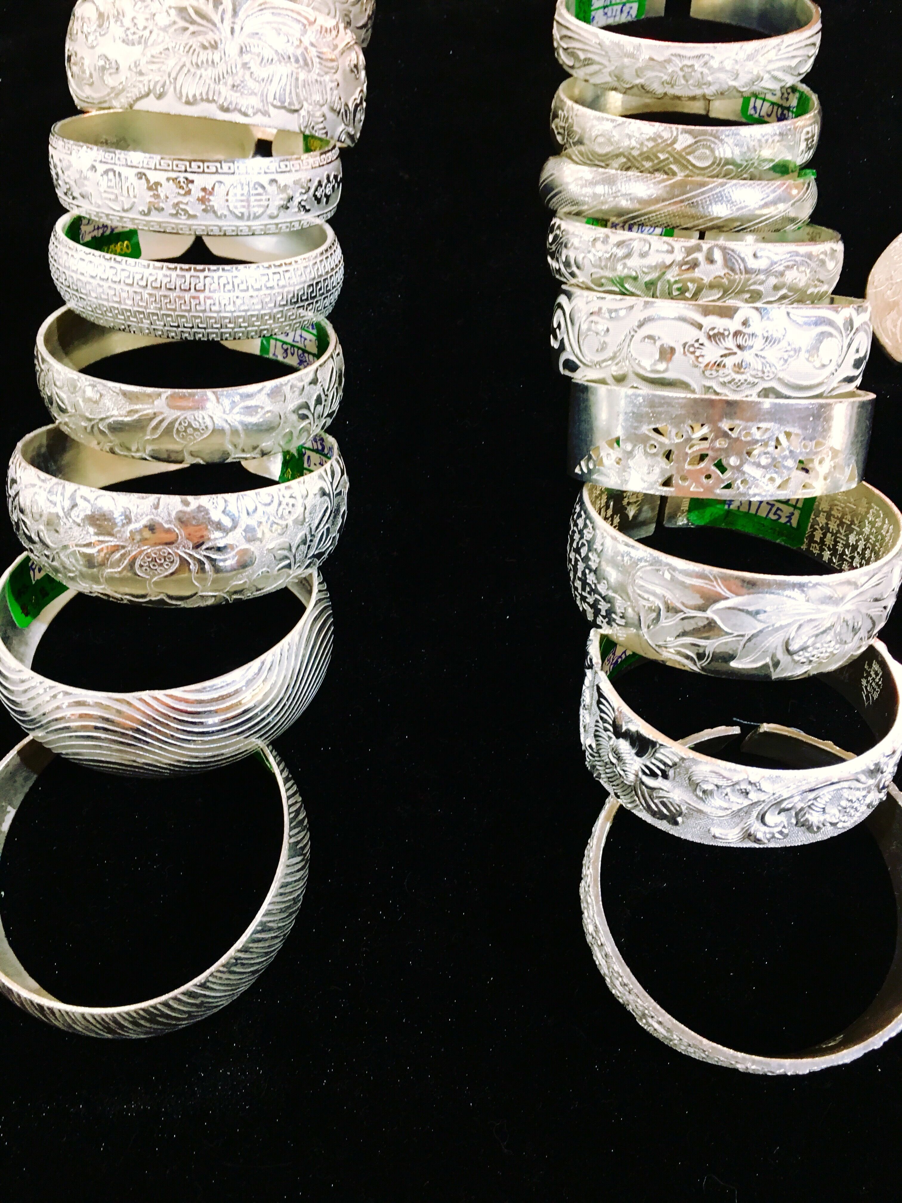 一路风光无限,下午走进曼贺纳古寨,肚子咕咕叫,村寨里饭店放假,门口大排档也打了烊,唯一的米粉摊正准备收摊,我赶紧买了碗米粉对付一顿。傣族的村寨都差不多,与曼丢不同的是,曼贺纳村商业气息更浓些。寨门两旁除了大排档还有几排店铺。这些店铺没放假,我进去看了看,全是卖银饰品的,这些饰品看着挺精细,就是不知是真是假了。