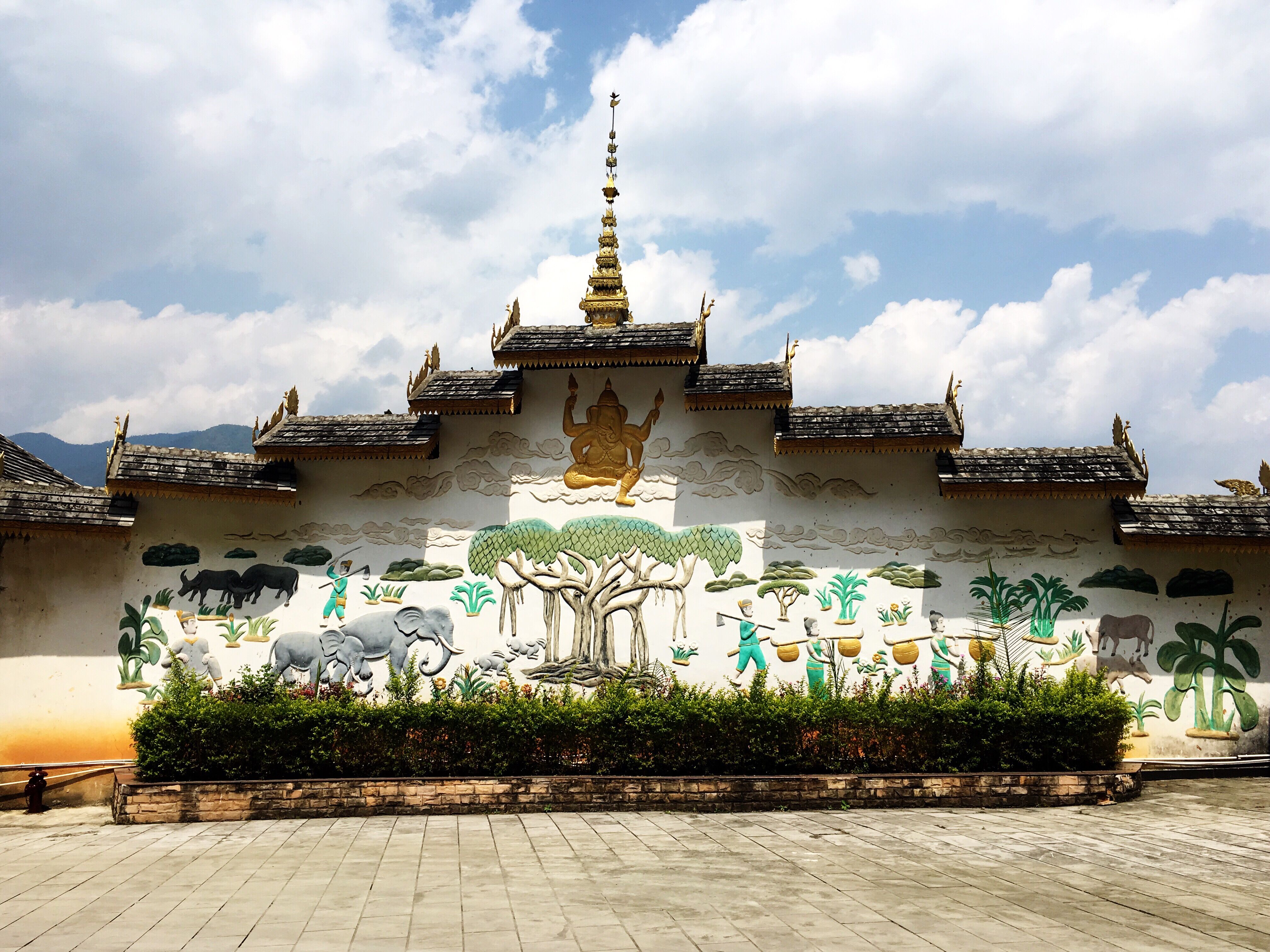 我对银饰不感兴趣,就进村溜达。游览一番下来,感觉没有什么看头。纯粹是为了旅游,让游客买东西的地方。因为下午涌进了大批游客,全都被导游领到银饰店里了。听说这个寨子古时是给傣王养大象的。寨子里也有佛寺,和曼丢村差不多,也在村后山坡上。