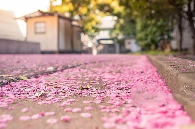 3.落樱也别有风情。当樱花开始掉落了,拍摄湖面上或者地面上的花瓣也能拍出别具一格的照片。