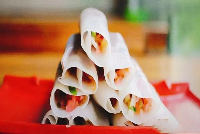 4.丝娃娃:别名素春卷,在贵阳是一种常见的地方传统小吃之一,只要在贵阳各地每一处街上,几乎都能看得见。而此菜素菜脆嫩,酸辣爽口,开胃健脾。