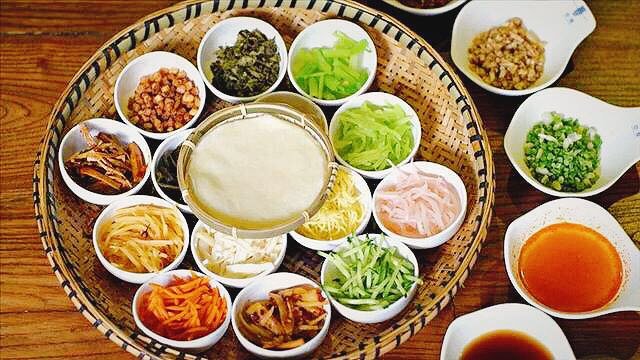 1.安顺裹卷:粉皮切块,裹入辣椒酱、绿豆芽、海带丝、泡菜、花生、黄豆、折耳根等不相同材料,馅料的颜色从薄薄的粉皮中透出,十分诱人。